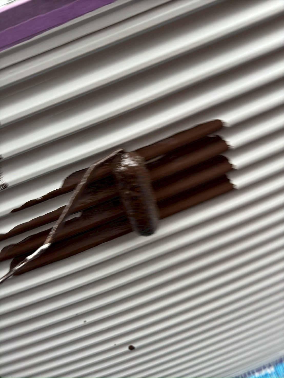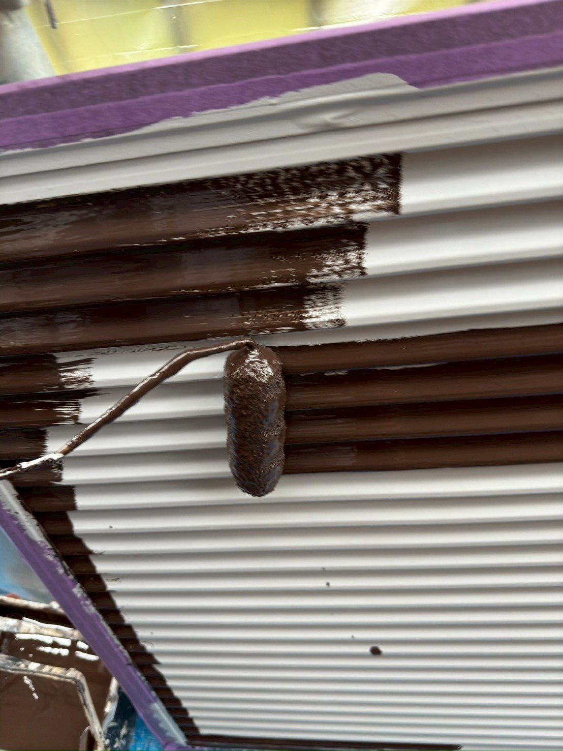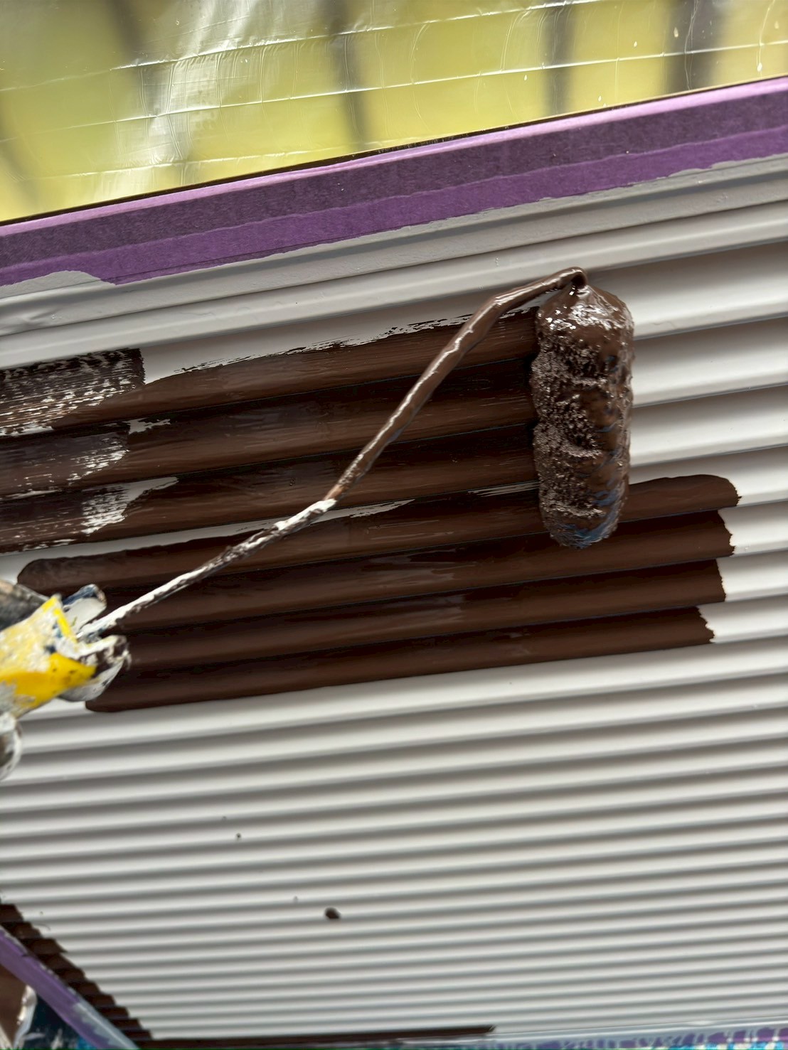 本塗装1回目として、こげ茶のシリコン塗料を使用しています。