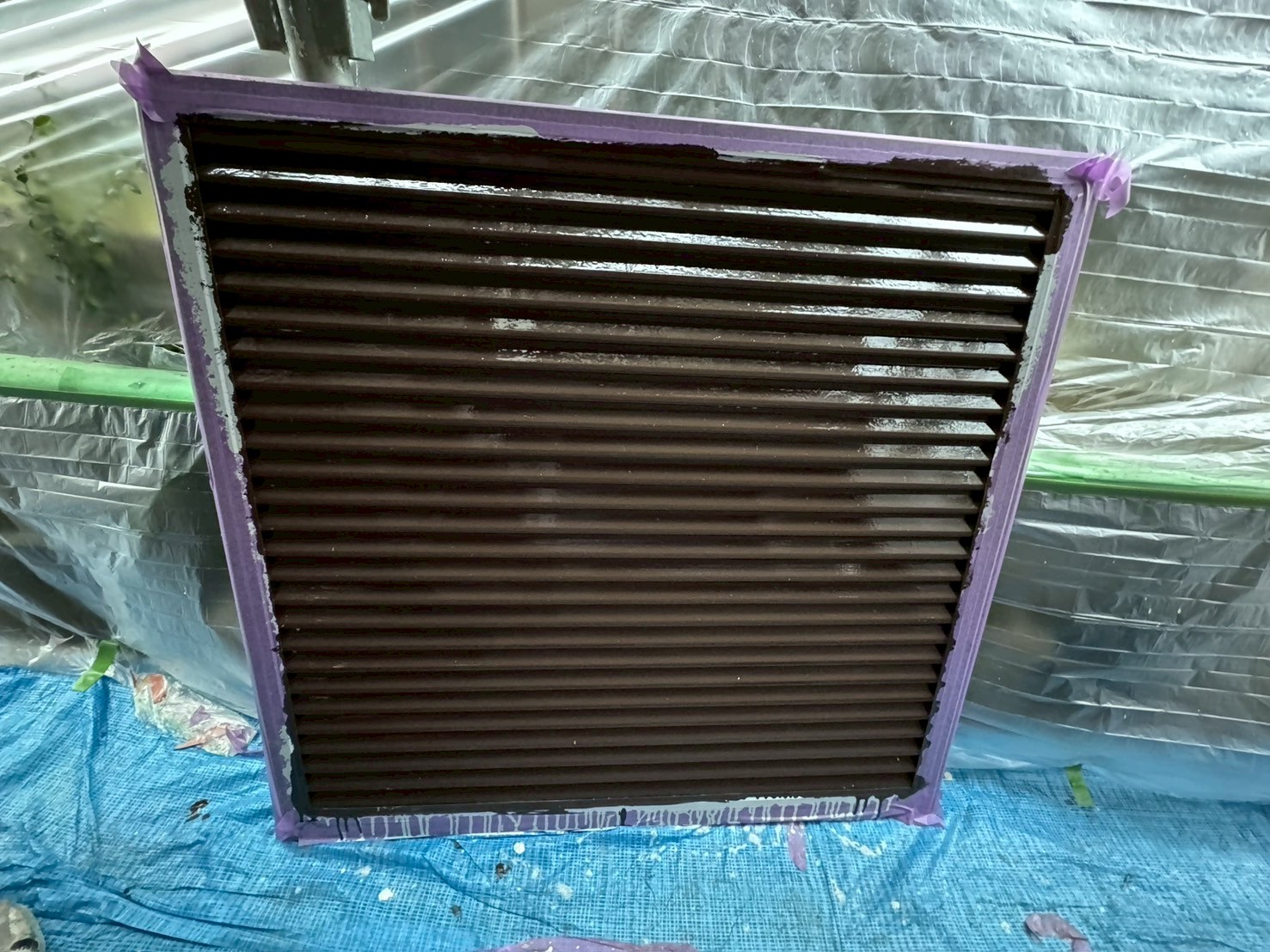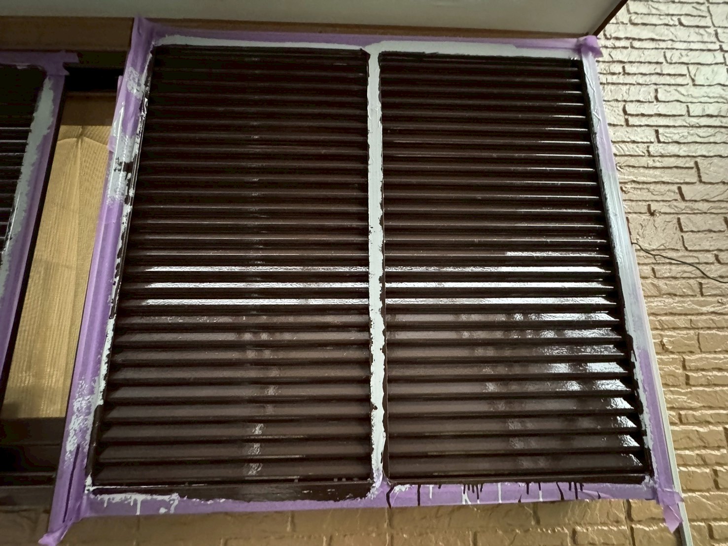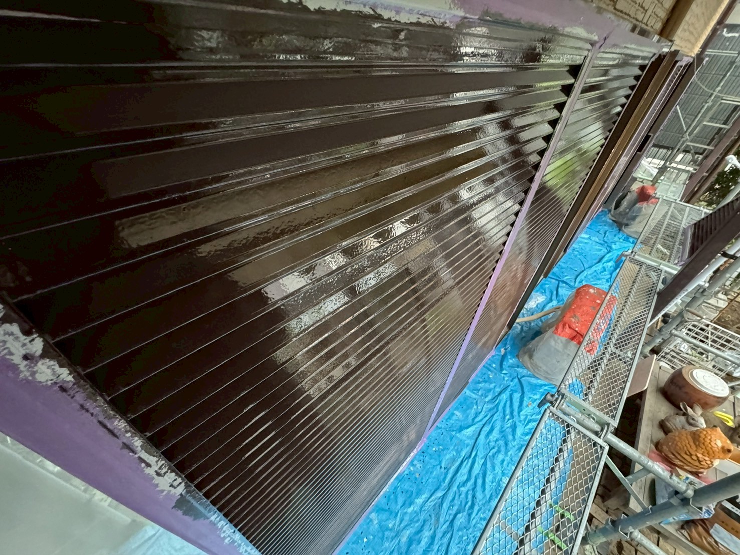 下塗りでは白色の錆止めを使用し、その後、耐候性・光沢性に優れたこげ茶のシリコン塗料で2回塗装を重ね、艶やかでムラのない仕上がりを実現しました。