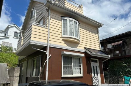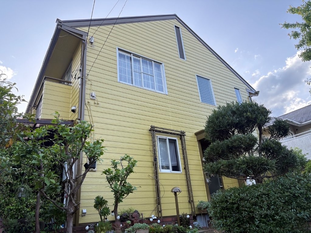 施工前の外壁は黄色系の塗装が色あせ、くすみが進行していました。