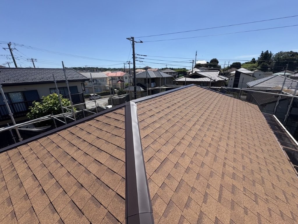 屋根の頂部に新しい棟板金を施工し、全体の防水性を強化。細部の仕上げまで丁寧に行い、見た目にも美しい仕上がりを実現しました。