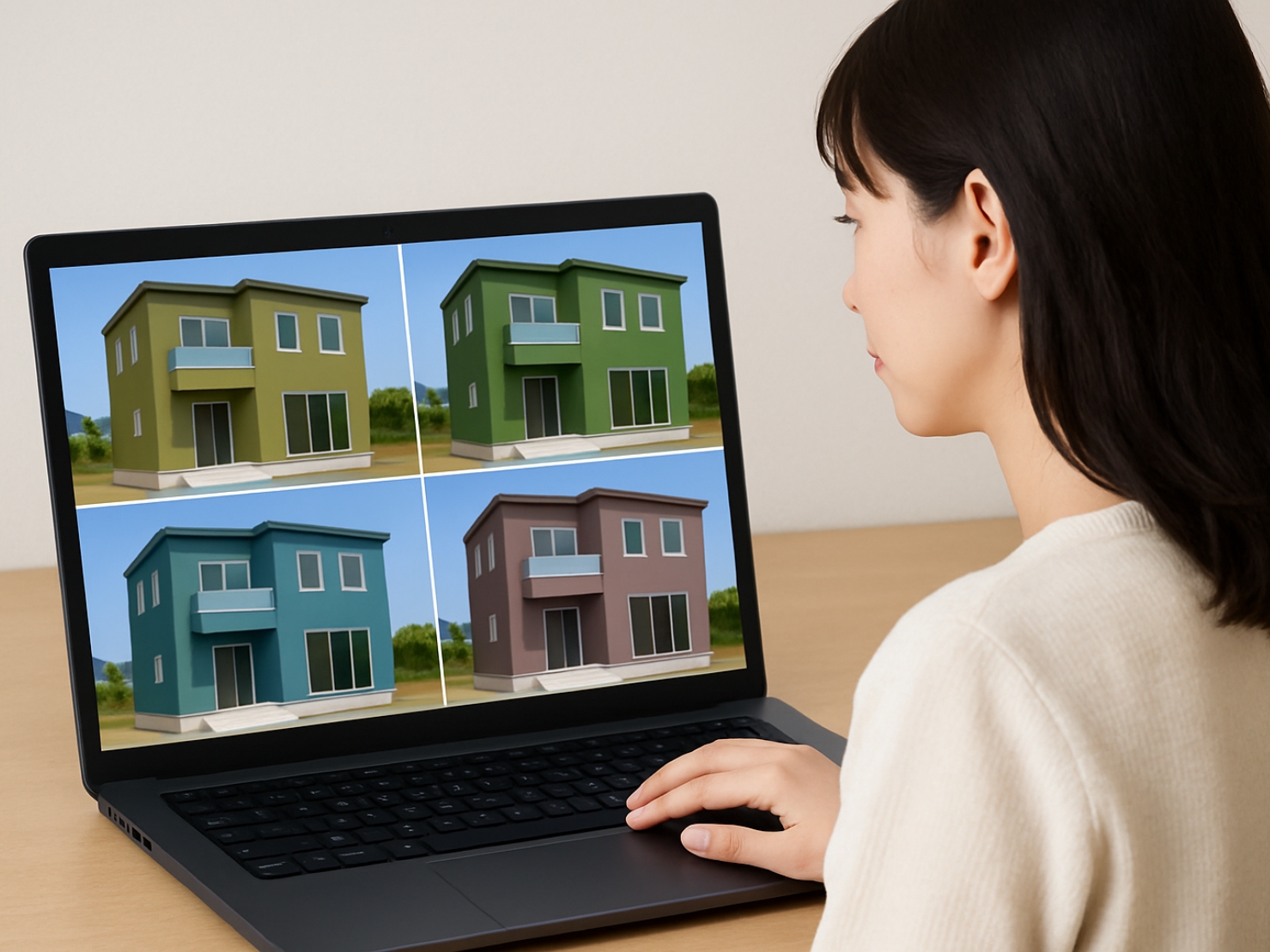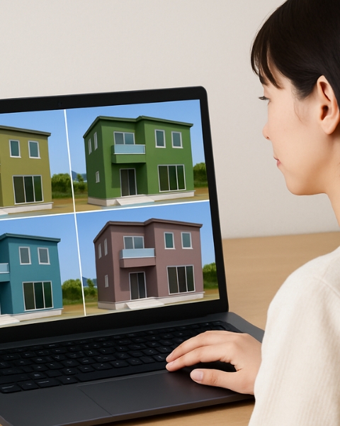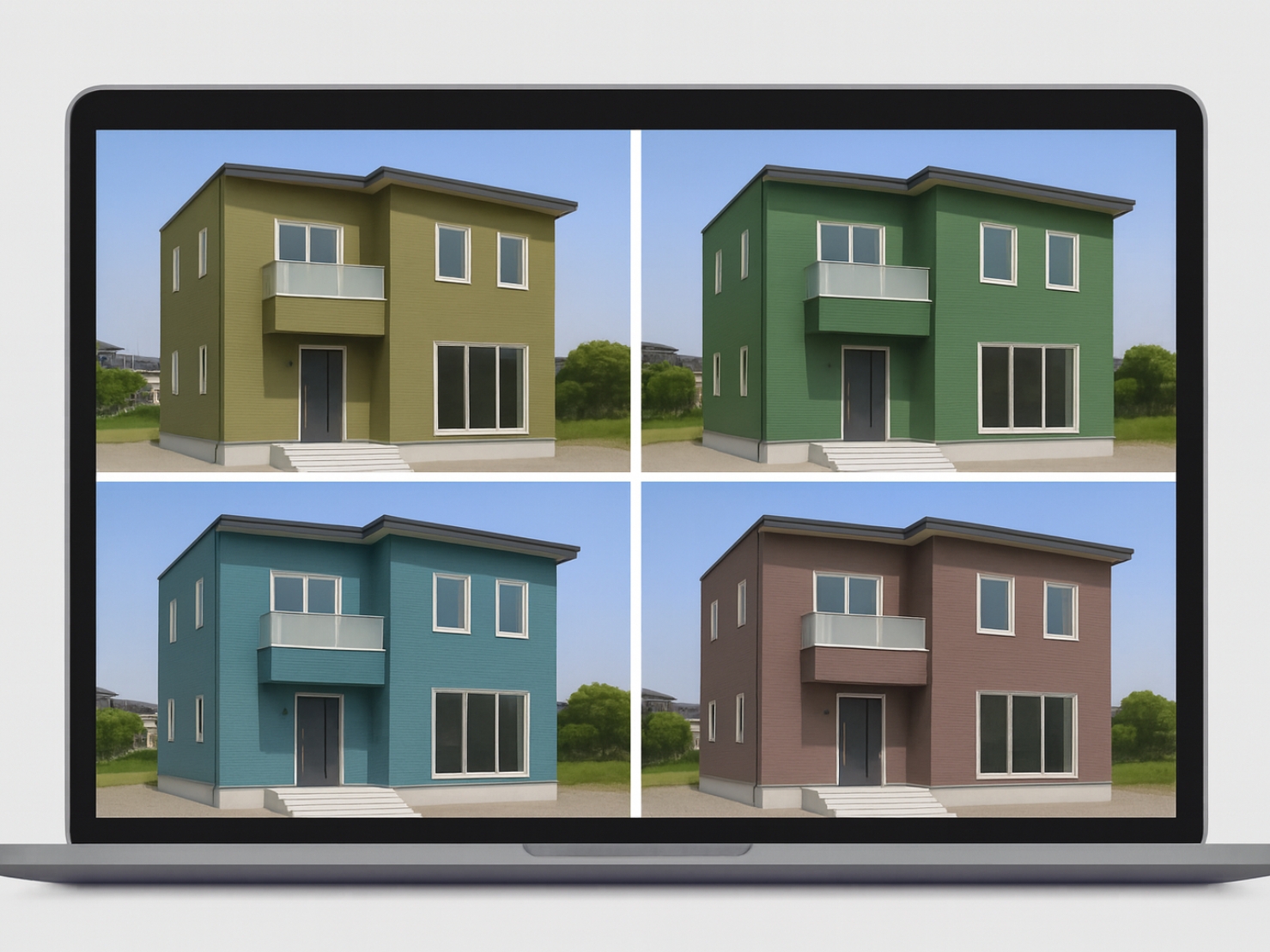 外壁塗装は仕上がりを“見て納得” 外壁塗装で多くのお客様が感じる不安は、「仕上がりのイメージがつきにくい」という点です。カタログの小さな色見本だけでは実際の雰囲気が掴めず、色選びに迷ってしまいがちです。 そこで對馬総建では、ご自宅の写真を使ったカラーシミュレーションをご提供しています。実際の外観に色を当てはめて確認できるため、仕上がりを具体的にイメージでき、安心して色選びを進められます。 カラーシミュレーションで失敗しない外壁塗装 外壁塗装で塗料を選ぶ際のポイントは、 「価格」「耐用年数」「機能性(遮熱など)」「色」の4つです。 塗装には住まいを守る役割がありますが、新築のように見た目をきれいにしたり、自分好みの色に仕上げることも大切な目的です。 ただし、「好きな色を選べばいい」というわけではなく、建物との相性や周囲との調和など、意外と多くの要素を考える必要があります。 さらに外壁・屋根塗装は100万円前後かかる高額リフォームのため、「イメージと違った」「飽きたから塗り直したい」と気軽にやり直すことはできません。 だからこそ、慎重に色を選ぶことがとても重要です。 色選びでこのようなお悩みをよく伺います ✔ 外壁塗装の色がイメージできず仕上がりが不安 ✔ 近所とまったく同じ色はできれば避けたい ✔ ご近所の外壁カラーとしっかり調和させたい ✔ 最新のカラーシミュレーションで色を試してみたい ✔ 後悔しない外壁塗装・屋根塗装の色選びをしたい 実際のところ、外壁の色選びには多くのお客様がたっぷり時間をかけられます。そこで對馬総建では、ご契約後にカラーシミュレーションをご提供しています。 パソコン上でのシミュレーションのため、実際の塗料の色と完全に一致するわけではありませんが、仕上がりのイメージをつかむには非常に効果的です。 多くのお客様からも「なるほど!こんな雰囲気になるんですね!」とご好評いただいており、色選びの不安解消に役立っています。 塗替え前にカラーシミュレーションを行うことで理想の色を確実にイメージできます。 カラーシミュレーション前 外壁全体に汚れや色あせが見られ、築年数相応の劣化が進んでいる状態です。特に日当たりや雨だれの影響を受けやすい部分が黒ずみ、建物全体の印象が暗く見えてしまっています。このような状況から、塗装後の仕上がりをイメージしやすくするためにカラーシミュレーションを行います。 ベージュ系でシミュレーション 外壁を淡いベージュ系でシミュレーションしたパターンです。落ち着いた雰囲気が出て、周囲の住宅とも馴染みやすい上品な仕上がりになります。汚れも目立ちにくく、明るさと清潔感を両立したカラーイメージです。 ブラウン系でシミュレーションしたパターン 外壁を落ち着いたブラウン系でシミュレーションしたパターンです。住まい全体に重厚感と高級感が生まれ、落ち着いた大人の雰囲気を演出します。濃い色のため汚れが目立ちにくく、長く美観を保ちやすいカラーです。 色選びのポイント 外壁塗装の色選びに悩む方は多く、外壁の色によって家の印象は大きく変わるため迷ってしまうのも当然です。そこでここでは、外壁塗装のプロが“失敗しない色選びのコツ”を分かりやすくお伝えします。ぜひ色選びの参考にして、理想の仕上がりを実現しましょう。 01|迷ったら濃いめの色がおススメ 外壁塗装の色選びでは、少し濃いめの色を選ぶことをおすすめしています。 濃い色は周囲の環境に馴染みやすく、さらに 年月が経っても汚れが目立ちにくいという大きなメリットがあるためです。 近年は、自然に調和する落ち着いたカラーが人気で、ブラウン系・ベージュ系・グレー系を選ばれるお客様が増えています。 また、イエロー系・オレンジ系といった温かみのある色も、柔らかい雰囲気を演出できるため好まれています。 02|街並みとの調和も大切に 街並みを眺めながら「自分の家がどんな風に見えるだろう?」と考えてみると、より良い色選びができます。 自分の好みの色でも、実際には周囲の住宅と合わない場合があります。 もし、「この色にしたいけれど、少し浮いてしまうかも…」と感じたら、その直感はとても大切です。 周囲との調和も意識しながら選ぶことで、より満足度の高い仕上がりになります。 03|カラーシミュレーションを活用 試し塗りや色見本帳、色見本板では、どうしても“部分的な色の確認”しかできません。 そのため對馬総建では、ご契約後にコンピューターによるカラーシミュレーションを実施しています。 実際に塗装したときに、家全体がどんな雰囲気になるのかをCGで確認できるため、仕上がりのイメージをより正確につかむことができます。 カラーシミュレーションの流れ ご契約後は、お好きな色を選んでカラーシミュレーションを行うことができます。「うちの家にはどんな色が似合うかな?」「思い切ってイメージを変えたいけど少し不安