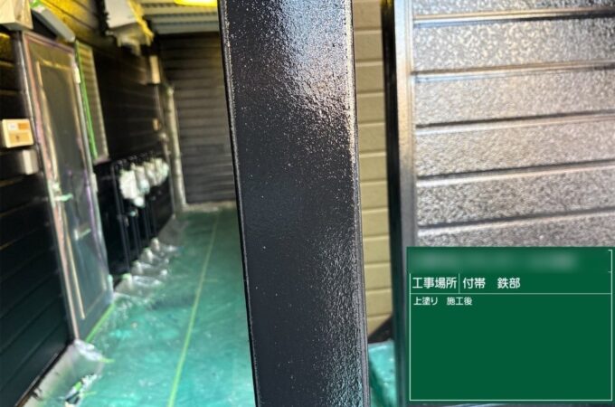 玄関まわり・柱の鉄部塗装は“建物全体の劣化を防ぐ要” こんにちは。 外壁塗装・付帯部塗装専門の 對馬総建 職人の柴 です。 今回は、千葉市花見川区の賃...