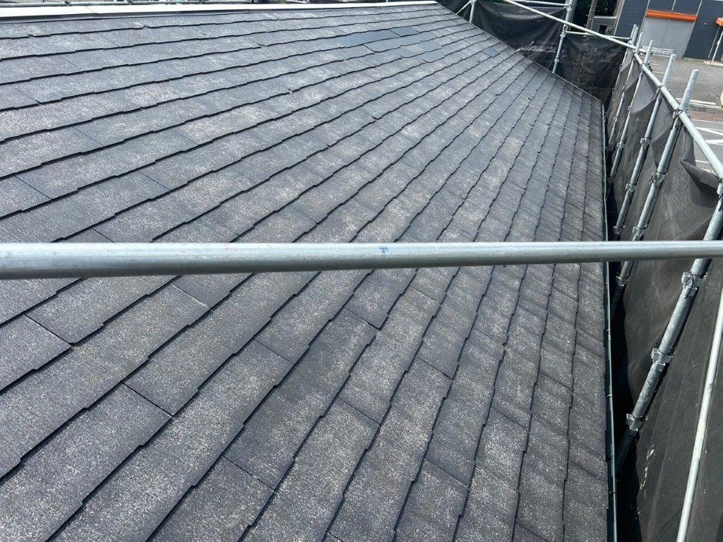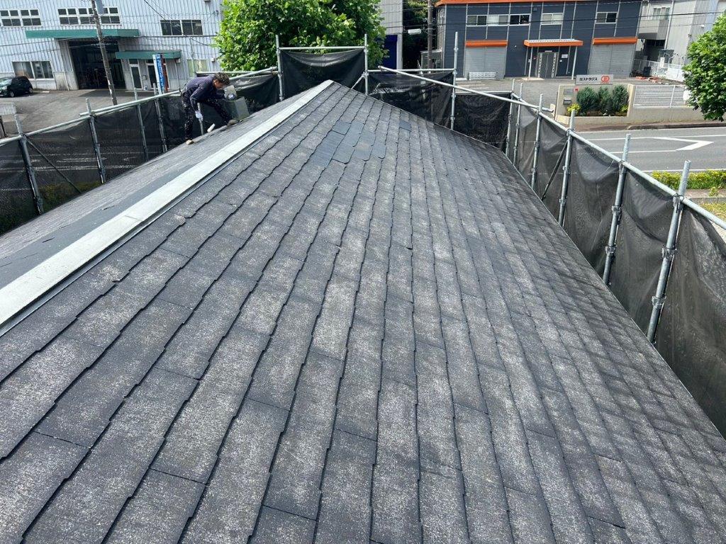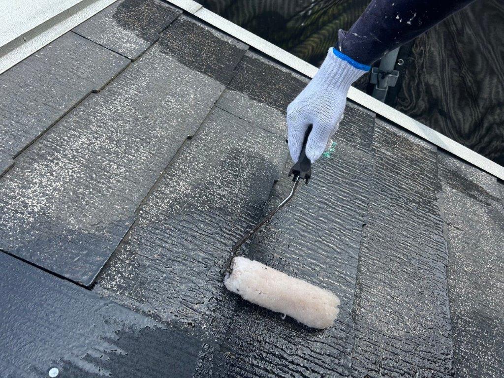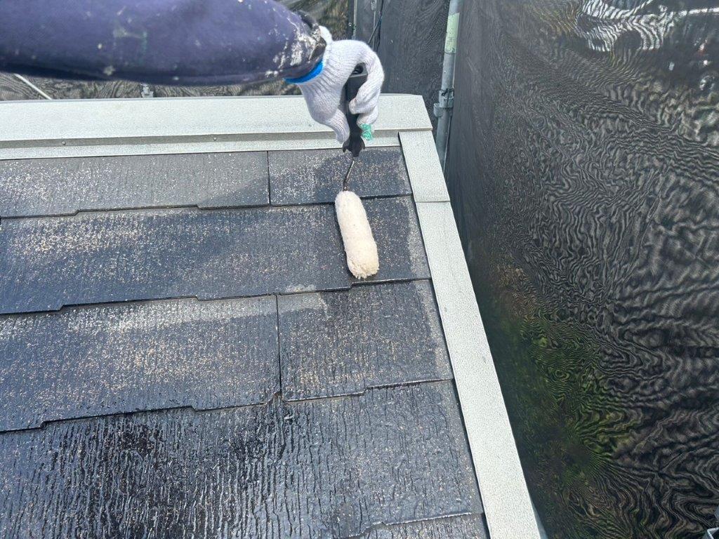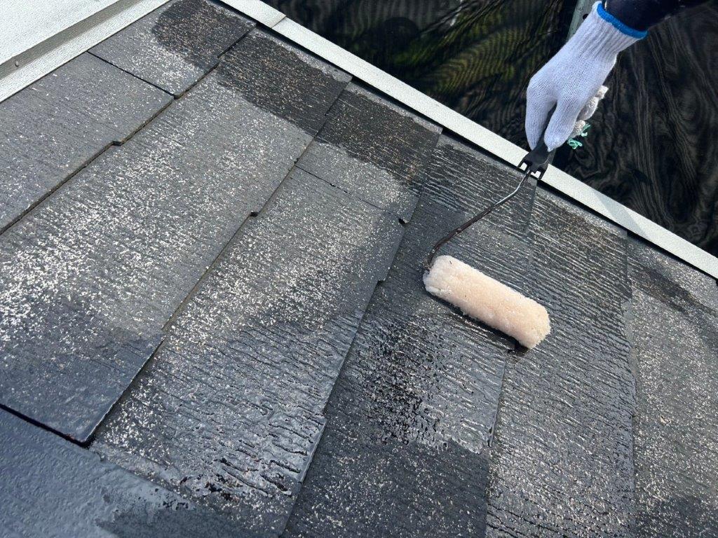 【千葉市花見川区】戸建て住宅の屋根中塗り塗装(主材1回目)|スレート屋根の発色と膜厚を整える重要工程