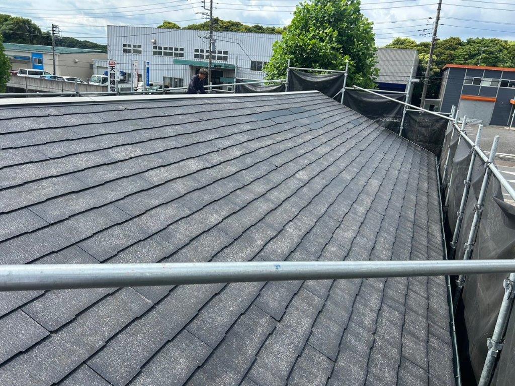 【千葉市花見川区】戸建て住宅の屋根上塗り塗装|主材2回目で耐久性と美観を最終仕上げ