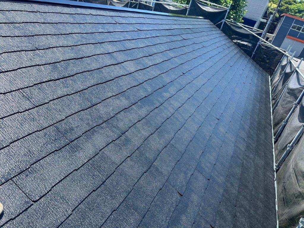 【千葉市花見川区】戸建て住宅の屋根上塗り塗装|主材2回目で耐久性と美観を最終仕上げ