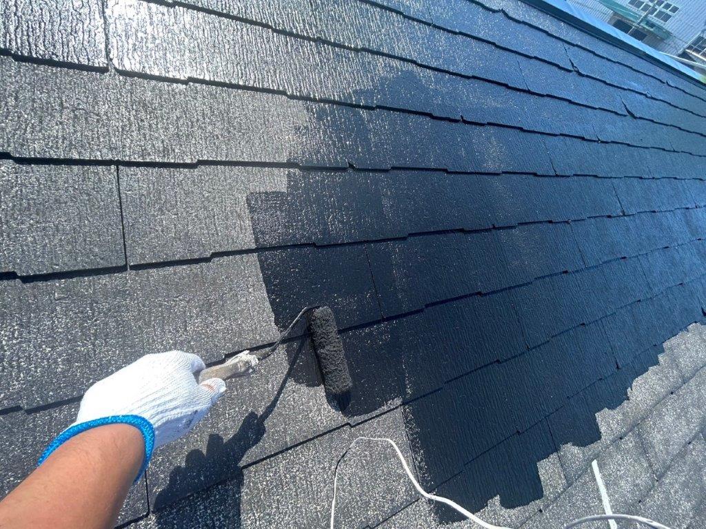 【千葉市花見川区】戸建て住宅の屋根中塗り塗装(主材1回目)|スレート屋根の発色と膜厚を整える重要工程