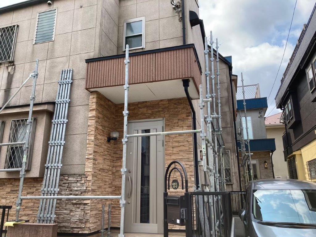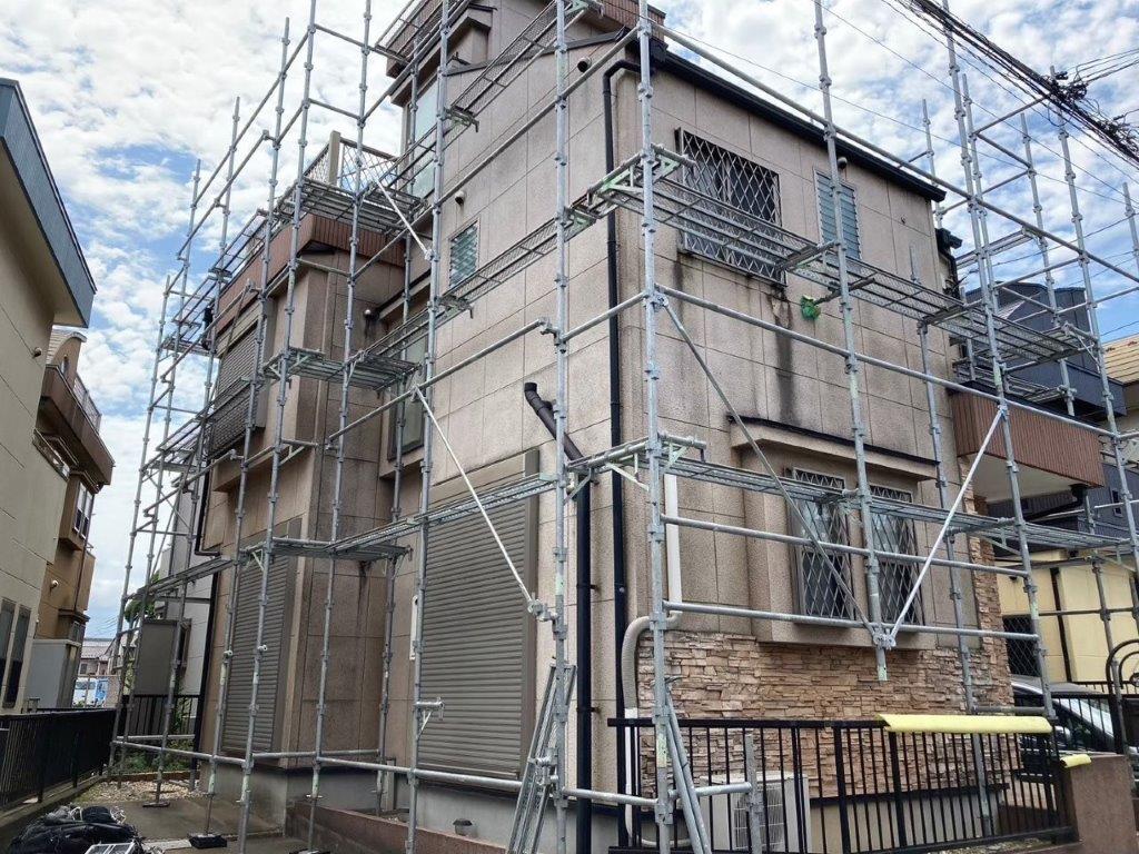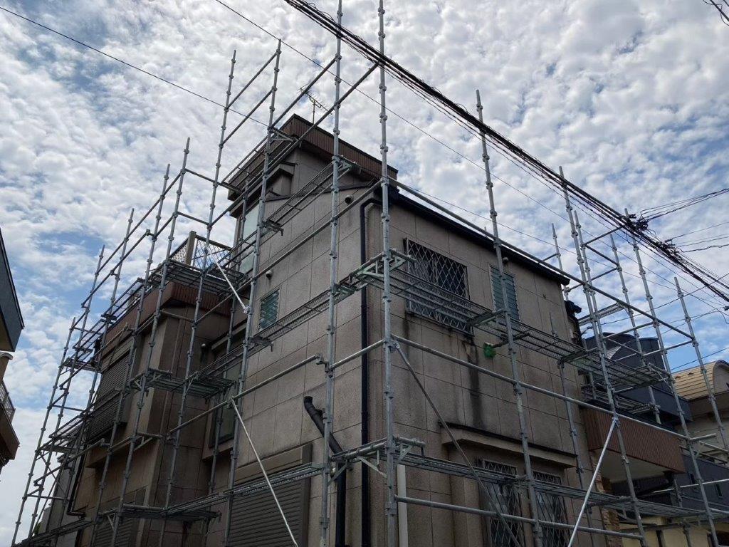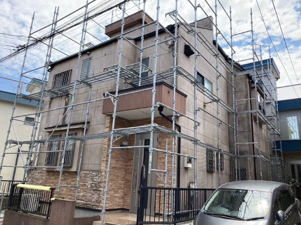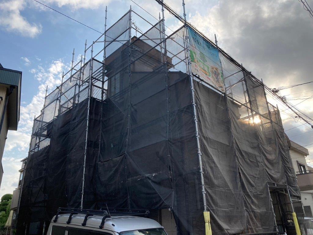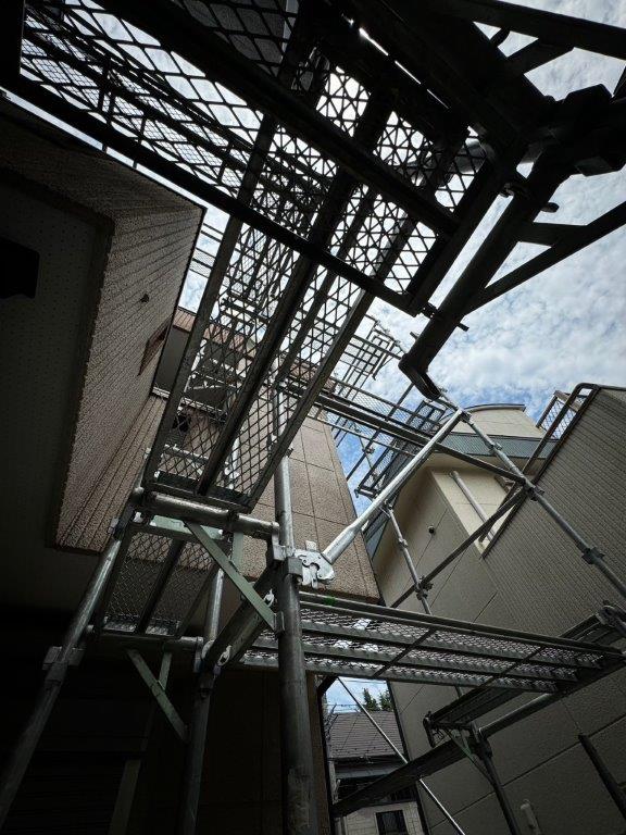安全で効率的な作業を行うための足場組み立て・メッシュシート張り|千葉県八千代市のM様邸にて塗り替えリフォーム