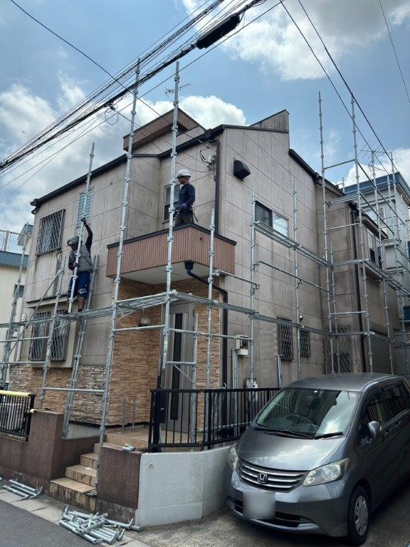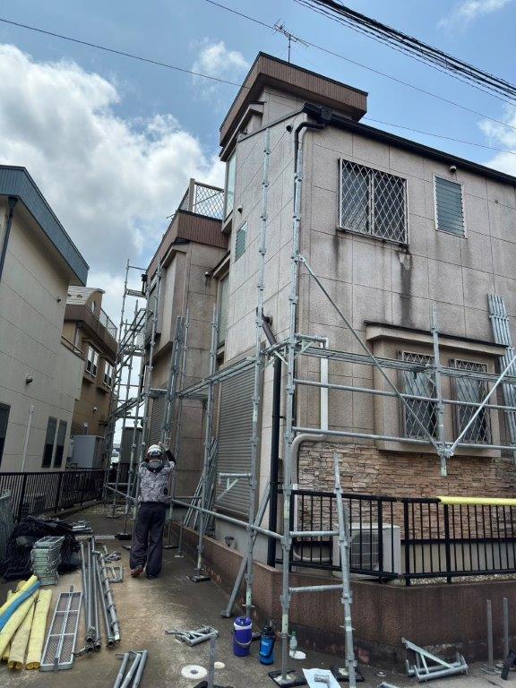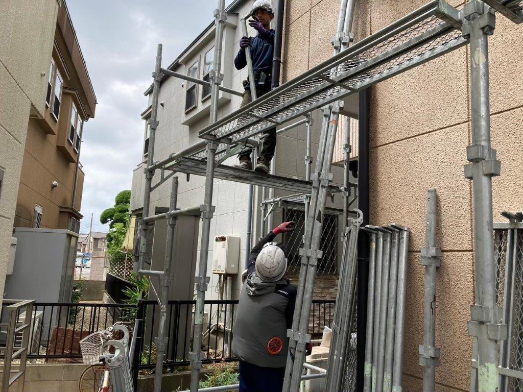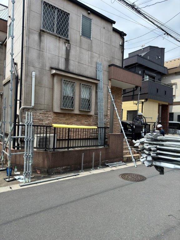 この日は外壁塗装前の足場組みを中心に施工を進めました。