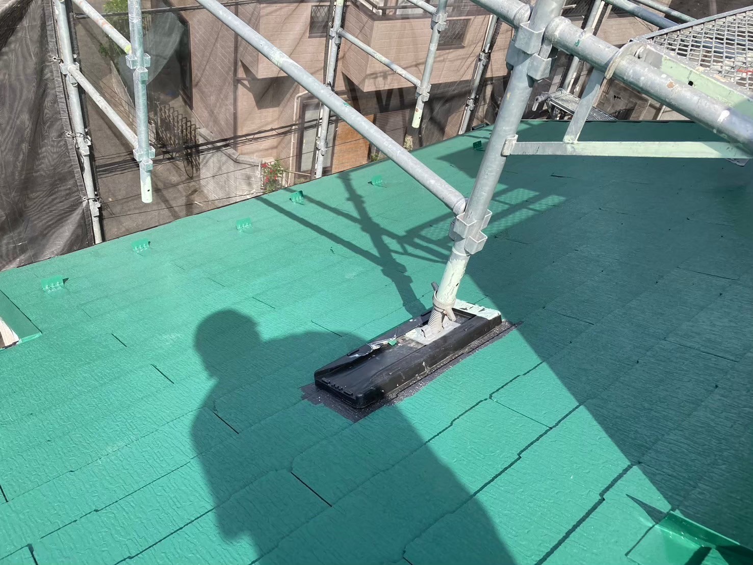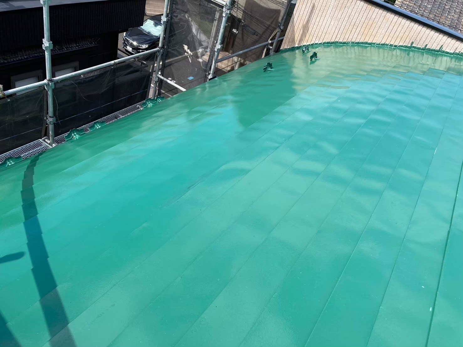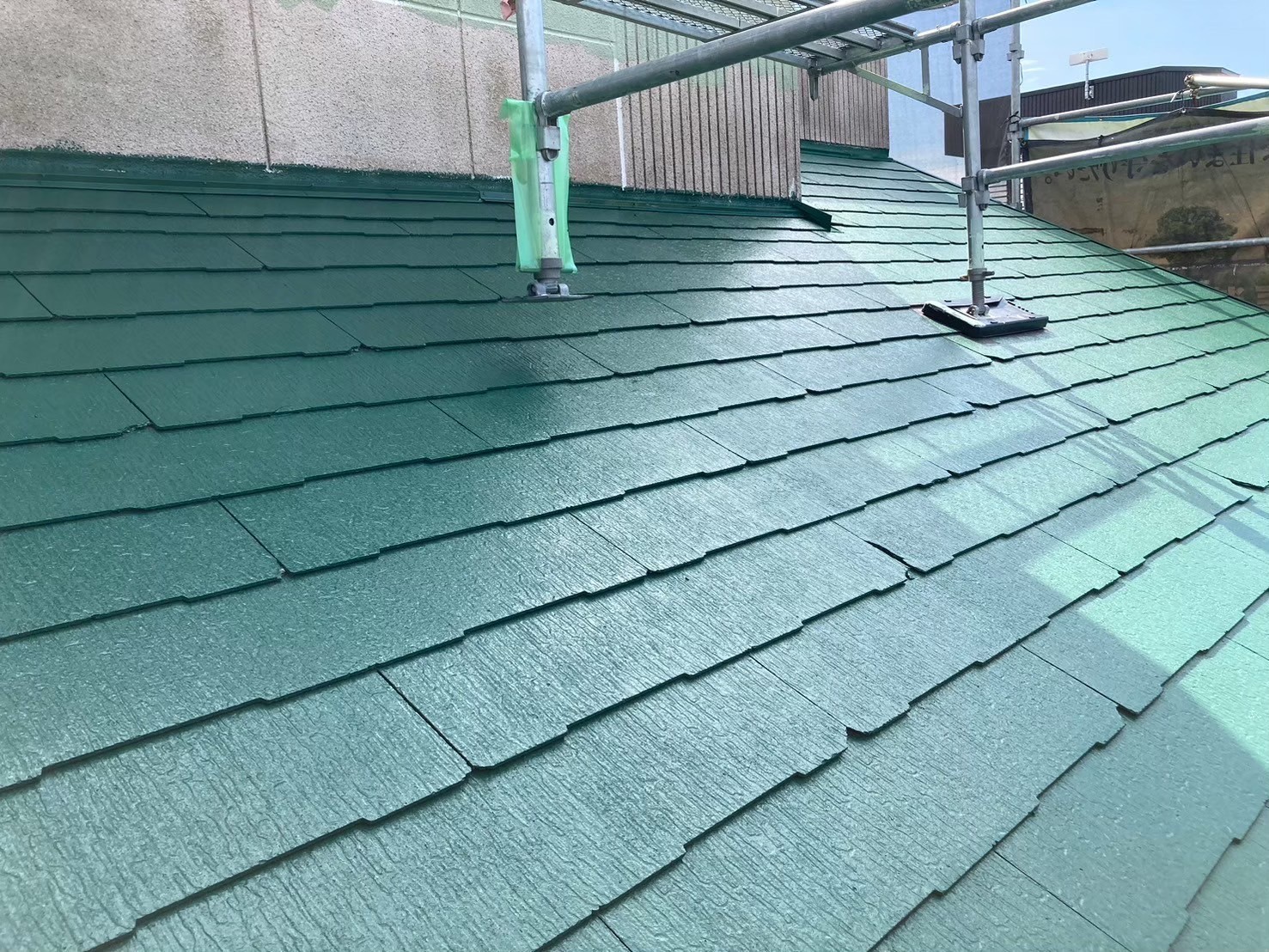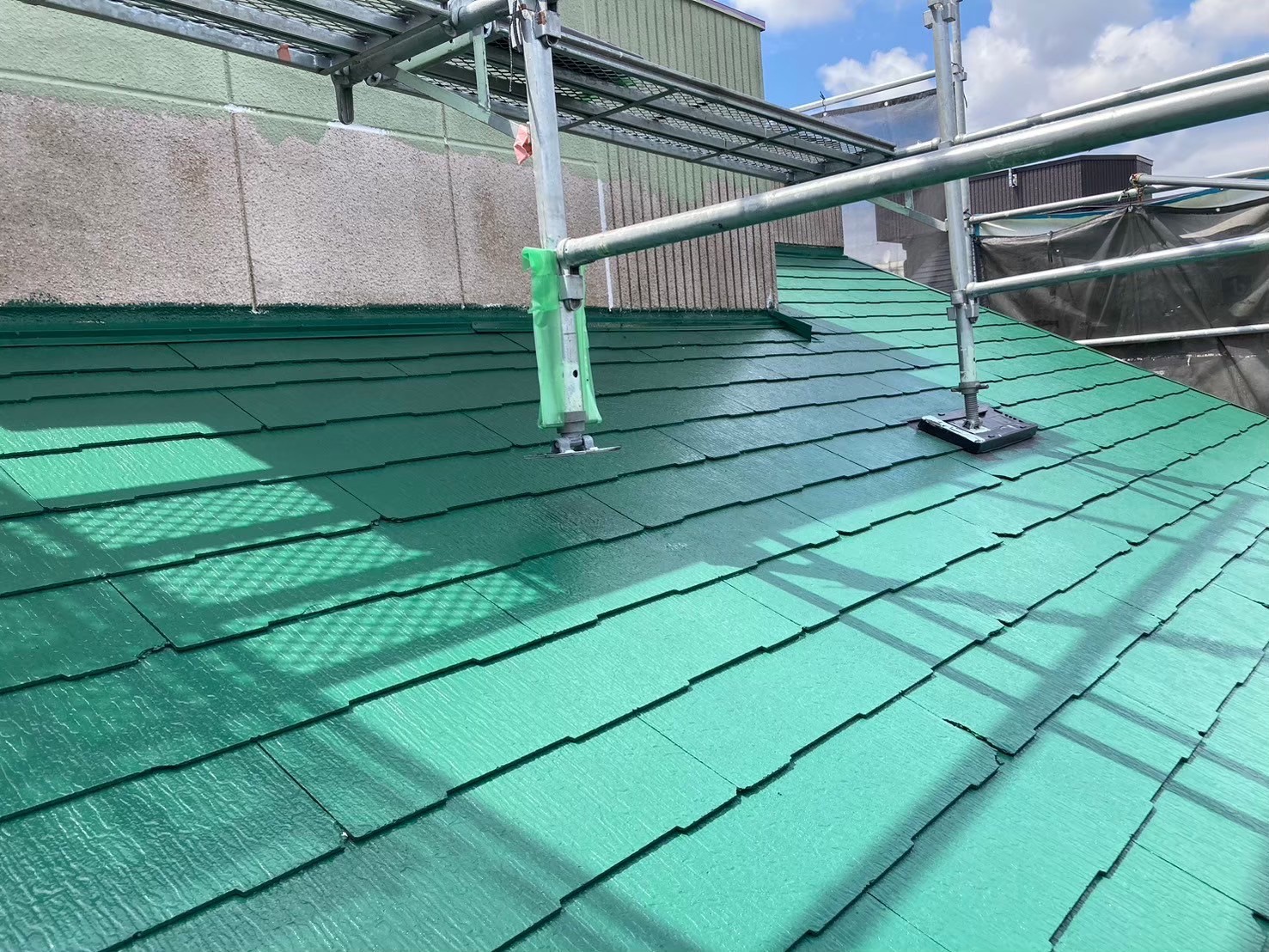 【千葉市花見川区】戸建て住宅の屋根中塗り塗装(主材1回目)|スレート屋根の発色と膜厚を整える重要工程