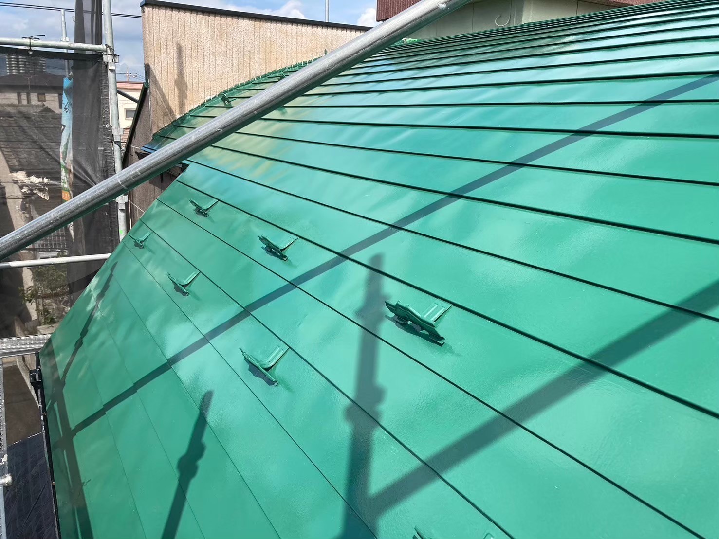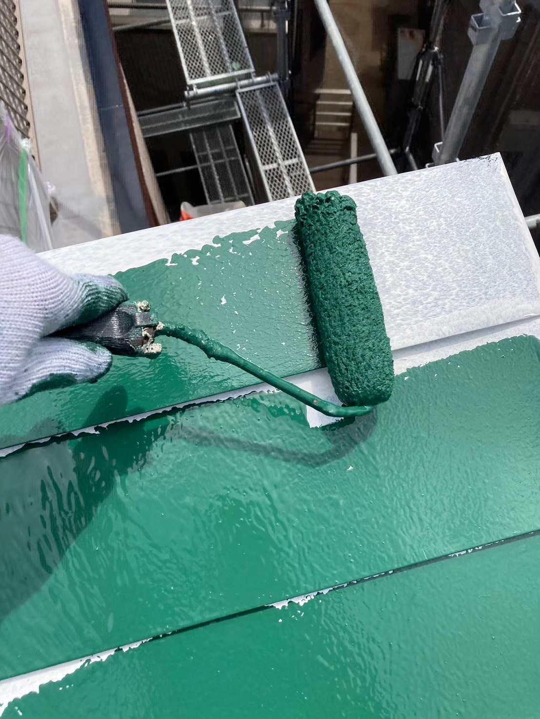 「中塗り」は、塗装プロセスの中間段階で、屋根の耐久性と仕上がりの美しさを左右する重要な工程です。