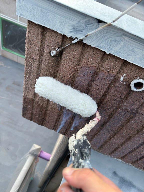 【千葉市花見川区】戸建て住宅の屋根中塗り塗装(主材1回目)|スレート屋根の発色と膜厚を整える重要工程