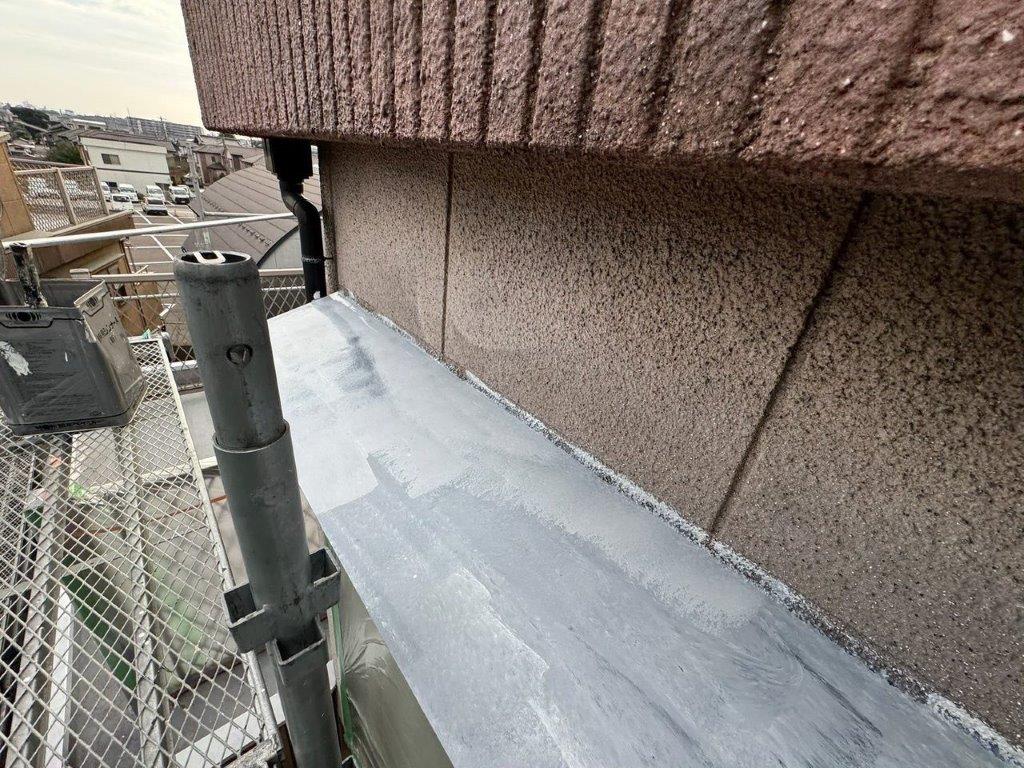 【千葉市花見川区】付帯部(鉄部)の中塗り塗装1回目|出窓屋根・水切り・窓まわりの仕上がりを整える工程