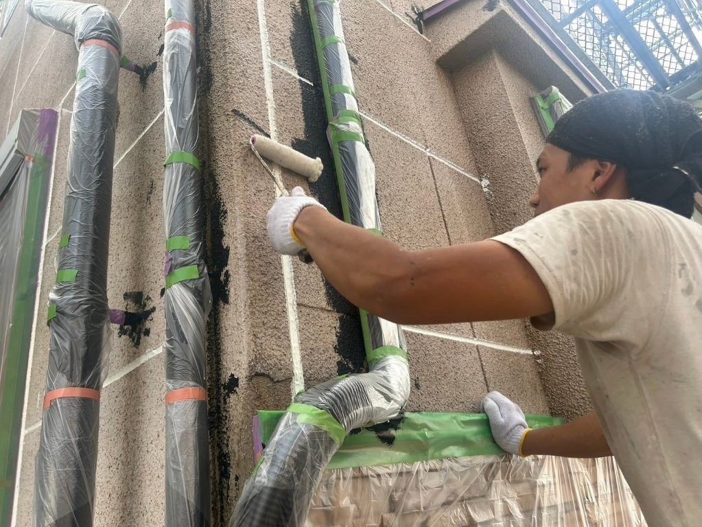 【千葉市花見川区】戸建て住宅のモルタル外壁下塗り塗装|フィラーによる下地調整で仕上がりと耐久性を高める重要工程
