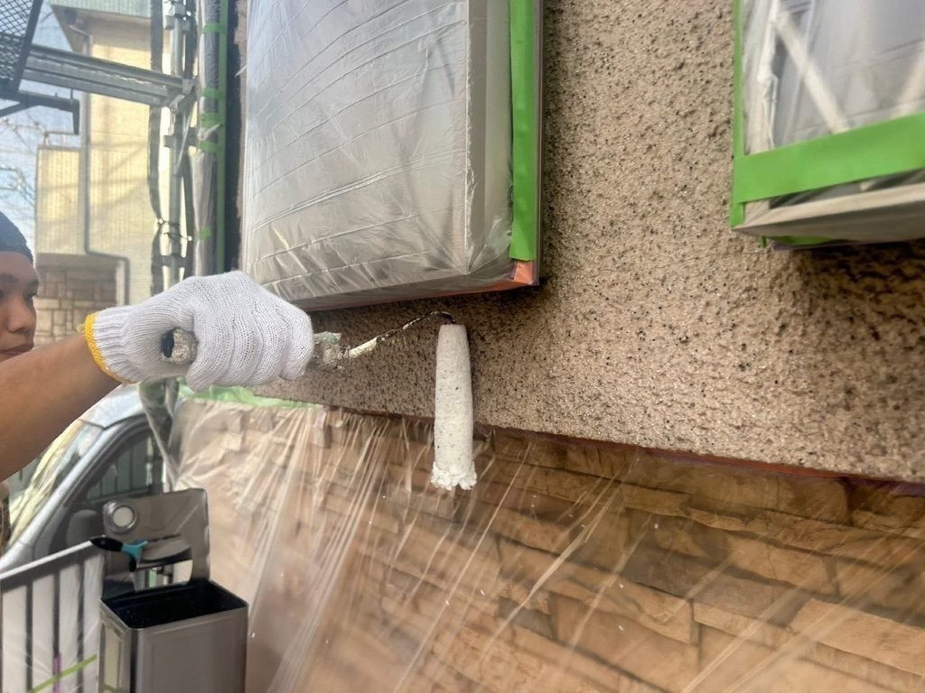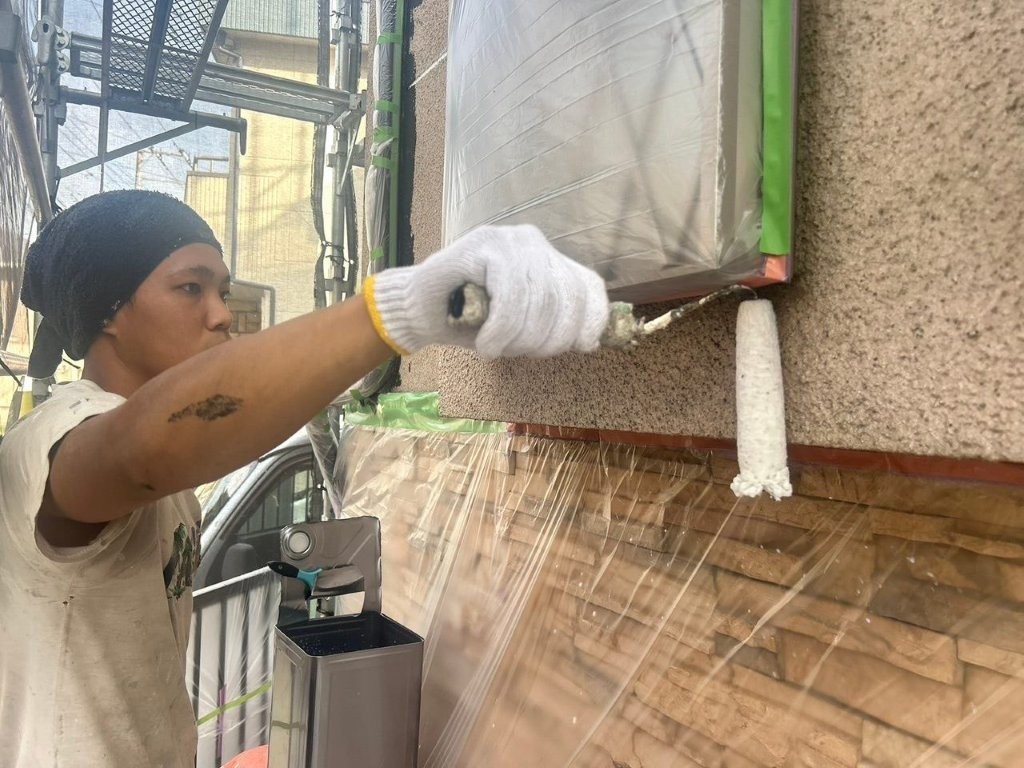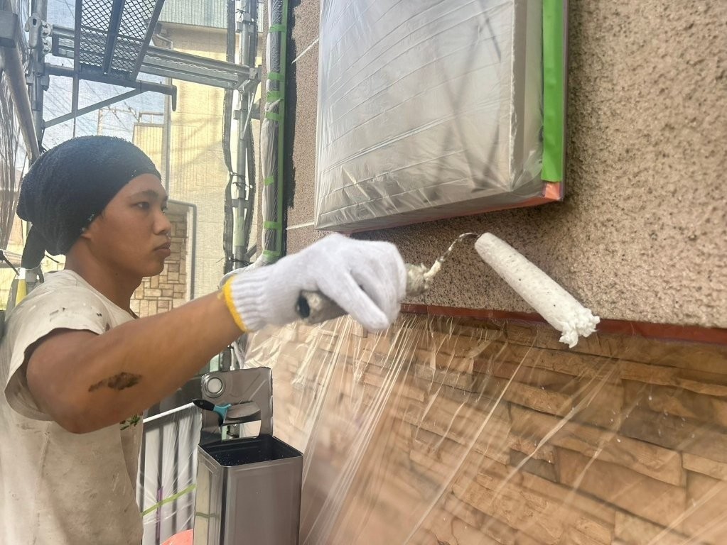 モルタル外壁の2回目の下塗り塗装|千葉県八千代市のM様邸にて塗り替えリフォーム