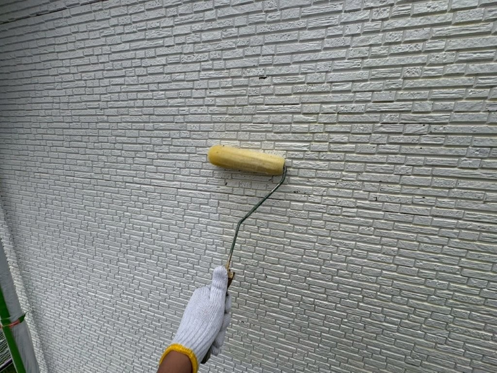 今回は、密着性と下地強化に優れた浸透性シーラーをローラーで丁寧に塗布していきました。