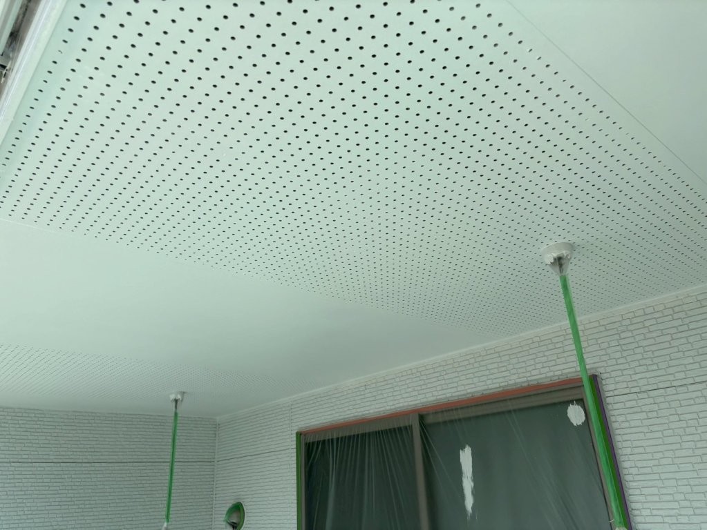 今回の塗装では、有孔ボードの通気性を妨げないように気を配りながら、丁寧に3工程で仕上げました。