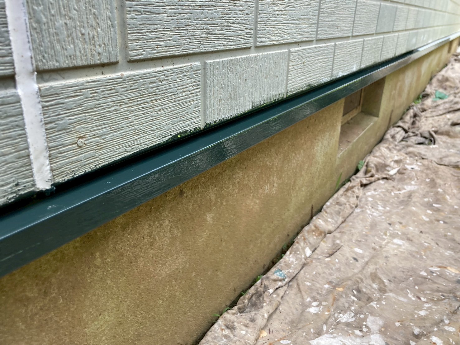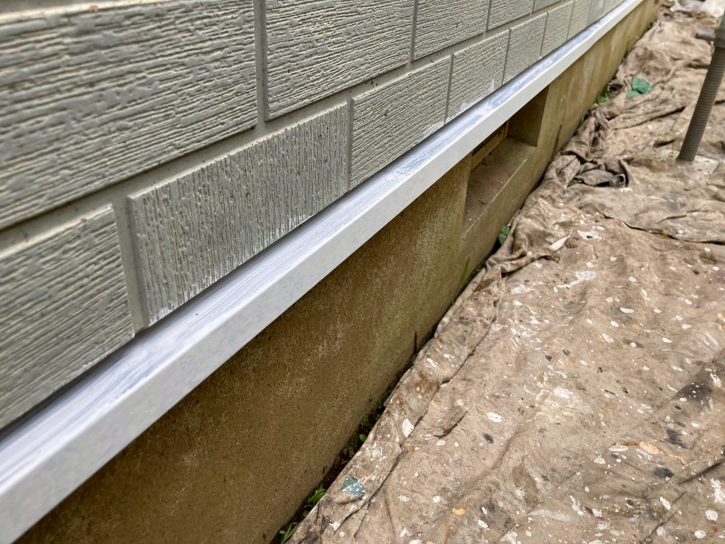 水切りは、外壁と基礎の間に設置される板金部材で、外壁を伝ってくる雨水を効率よく地面へ排水する役割を担っています。