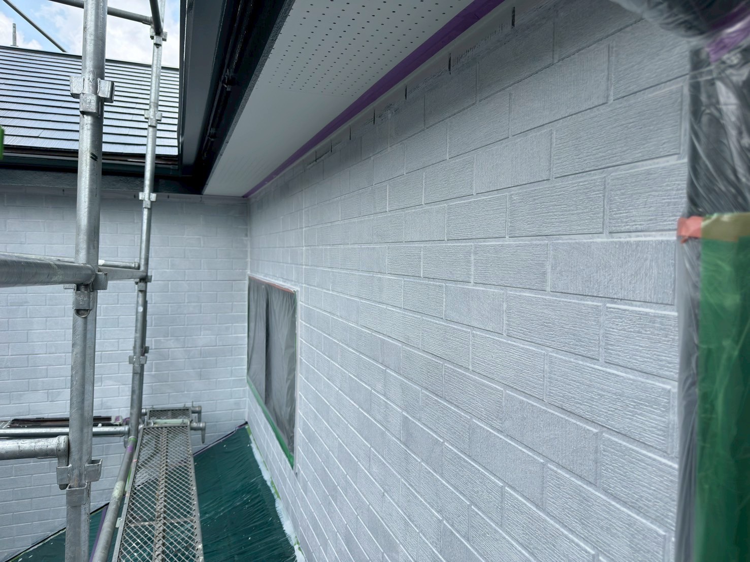 【中塗り塗装後】重厚感と艶が際立つ美しい外壁へ