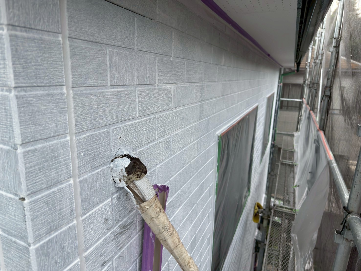 軒天との取り合いやサッシ周りは養生を徹底し、