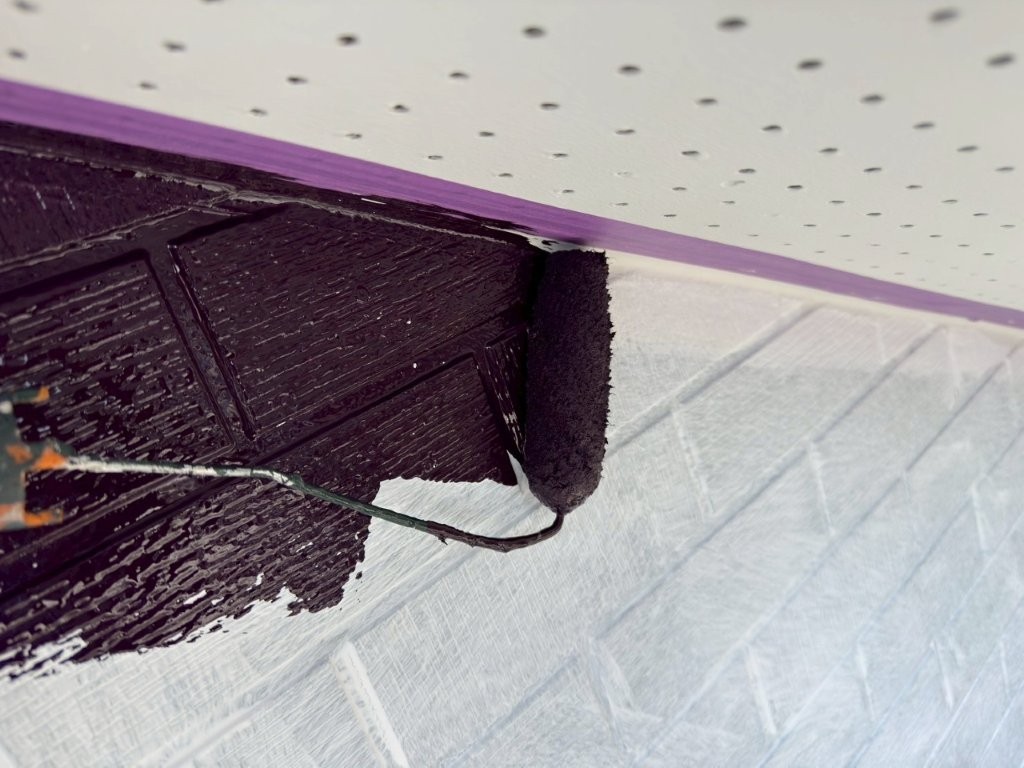 【中塗り塗装中】主材をローラーで丁寧に塗布