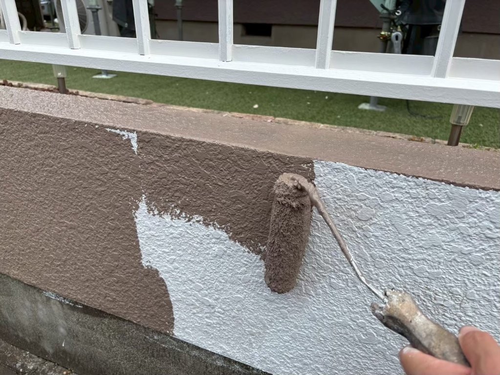 外塀は外観の印象を決定づける重要な要素であり、塗装精度の差が最も出やすい部分です。K様邸では、下塗りの状態を十分に確認した上で、中塗りを均一に仕上げることに注力しました。