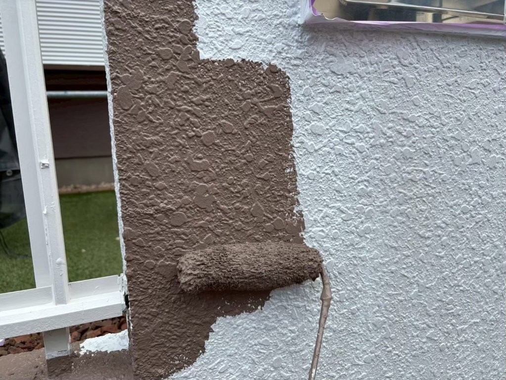 下塗り後の表面はわずかな凹凸が残るため、中塗りを施すことで塗膜を均一に整え、紫外線や雨風への耐性を高めます。
