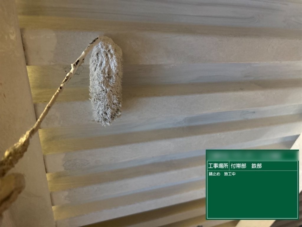 ケレン後は、ローラーと刷毛を使い分けながら錆止め塗料を鉄部全体へ塗布します。
