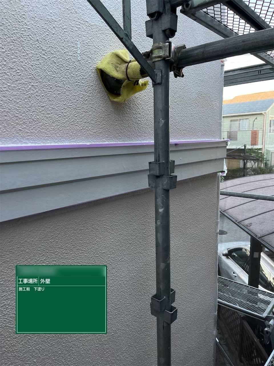 モルタル外壁は凹凸があるため、塗料が思わぬ方向へ飛散・付着しやすい場面もあります。こうした付帯部を守る段取りが整ってはじめて、下塗りを安定して進められます。